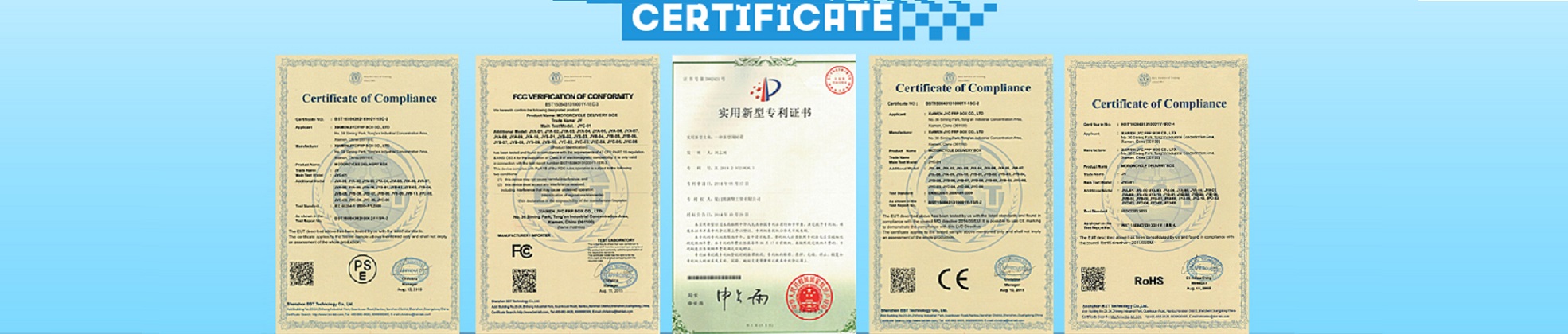 Xiamen JYC Industry & Trade Co., Ltd.( Xiamen JYC FRP Box Co., Ltd.) is located in Xiamen of China, a beautiful city which has international seaport and airport. Our company is specialized in manufacturing and exporting FRP(Fiber Reinforced Plastics)boxes: delivery box for motorcycle, scooter and electric bicycle; pass box; etc.. Cooperating with KFC, Pizza Hut, China Post, etc., it is in China's top brand. Our delivery boxes have passed product quality supervision and inspection tests and gotten CE, PSE, FCC, ROSH and SGS certificates. With superior quality, good price and efficient service, we believe we will be your reliable supplier. Designing, developing, producing and selling worldwide for nearly 10 years, we have established an advanced technical expert team in this line and have our own patented products. It is an annotation for advance with the times and renovated enterprise spirit, and a kind of seeking for concerning people’s livelihood and serving for the society.